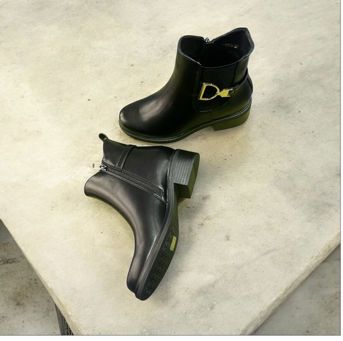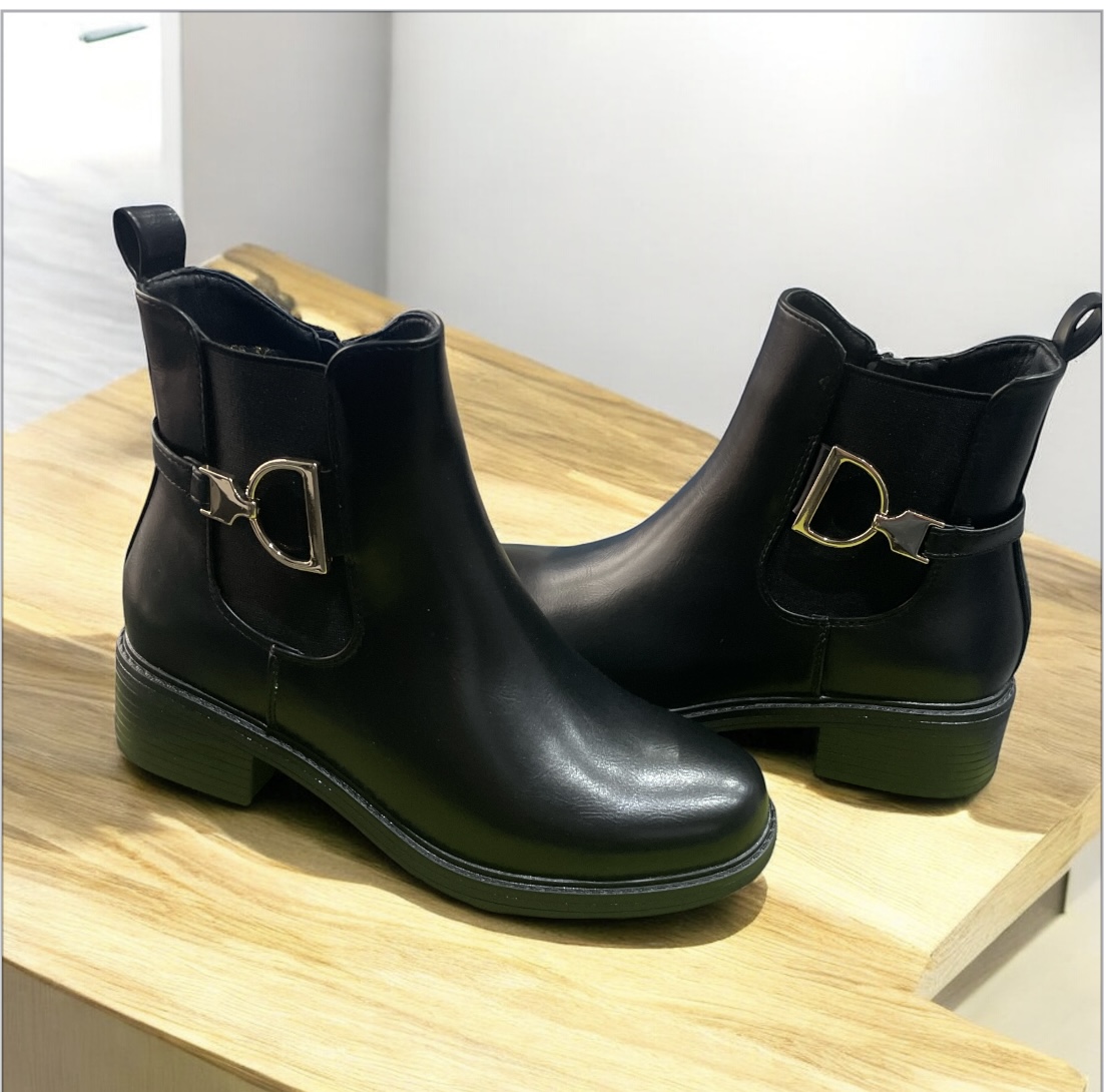 Eleganti e raffinati, questi stivaletti neri da Donna sono perfetti per completare ogni outfit. Realizzati in similpelle, si distinguono per la fibbia effetto metallo che dona un tocco di originalità. Il tacco alto 4,5 cm e la punta affusolata donano eleganza e stile. Ideali per occasioni speciali o per un look casual chic!